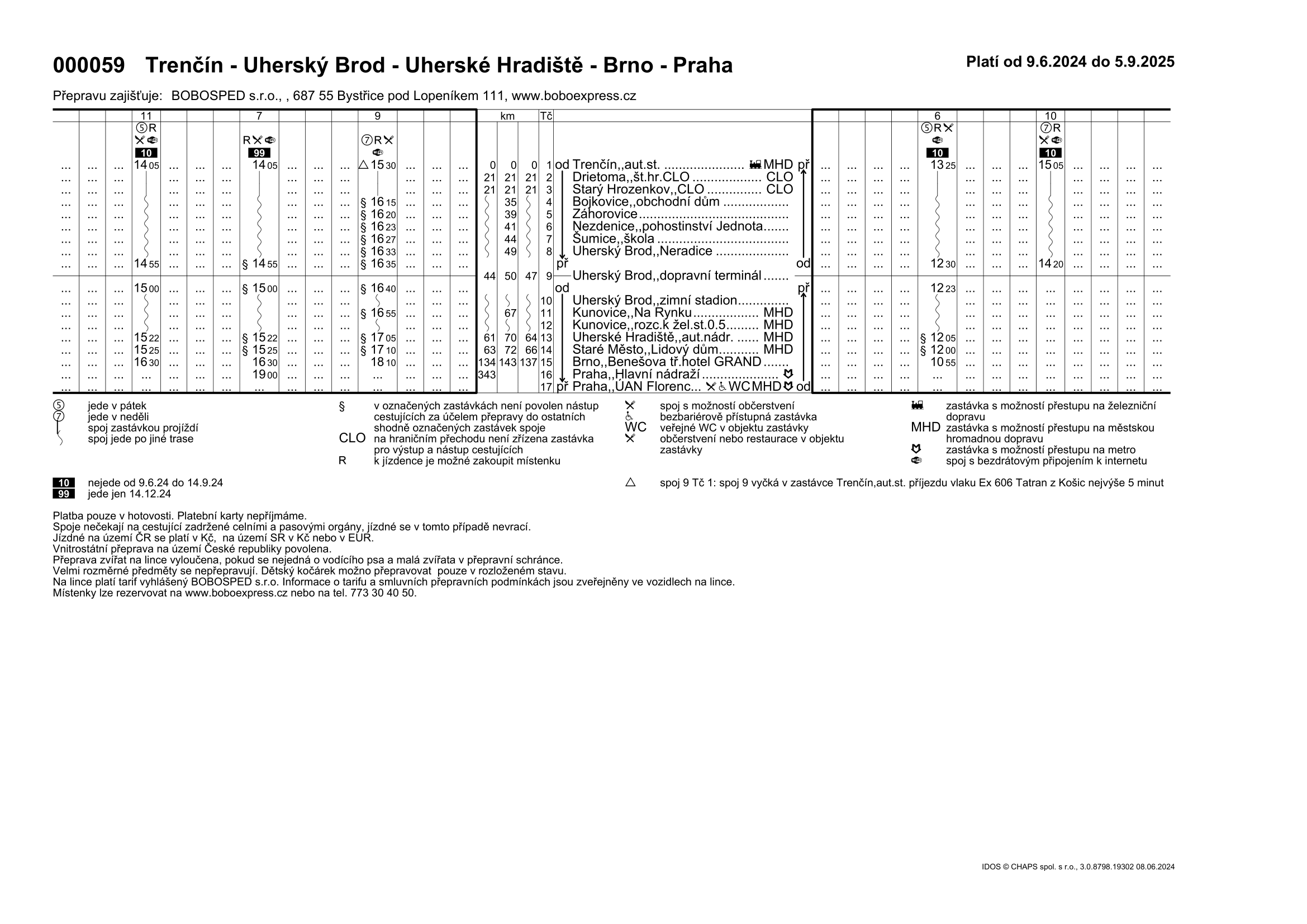 000 059 Trenčín - Uherský Brod - Uherské Hradiště - Brno - Praha