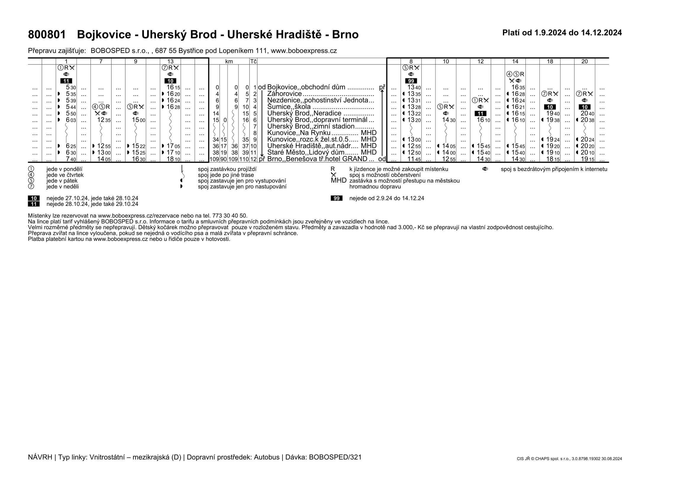 800801 Bojkovice - Uherský Brod - Uherské Hradiště - Brno