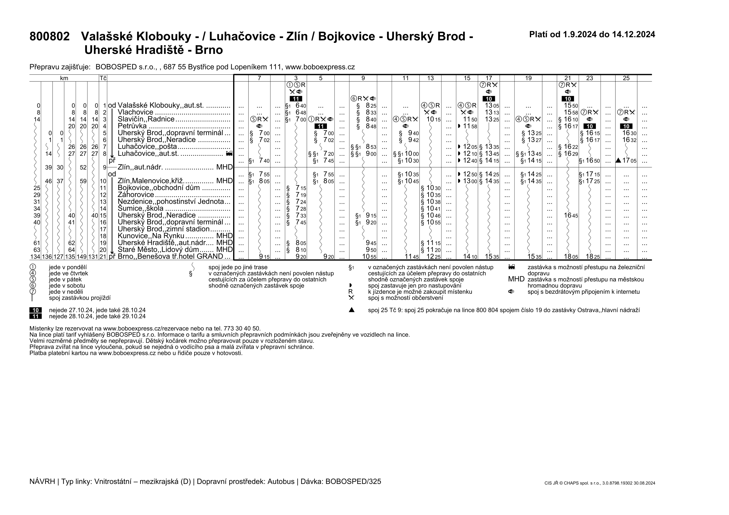 800802 Valašské Klobouky - / Luhačovice - Zlín / Bojkovice - Uherský Brod - Uherské Hradiště - Brno