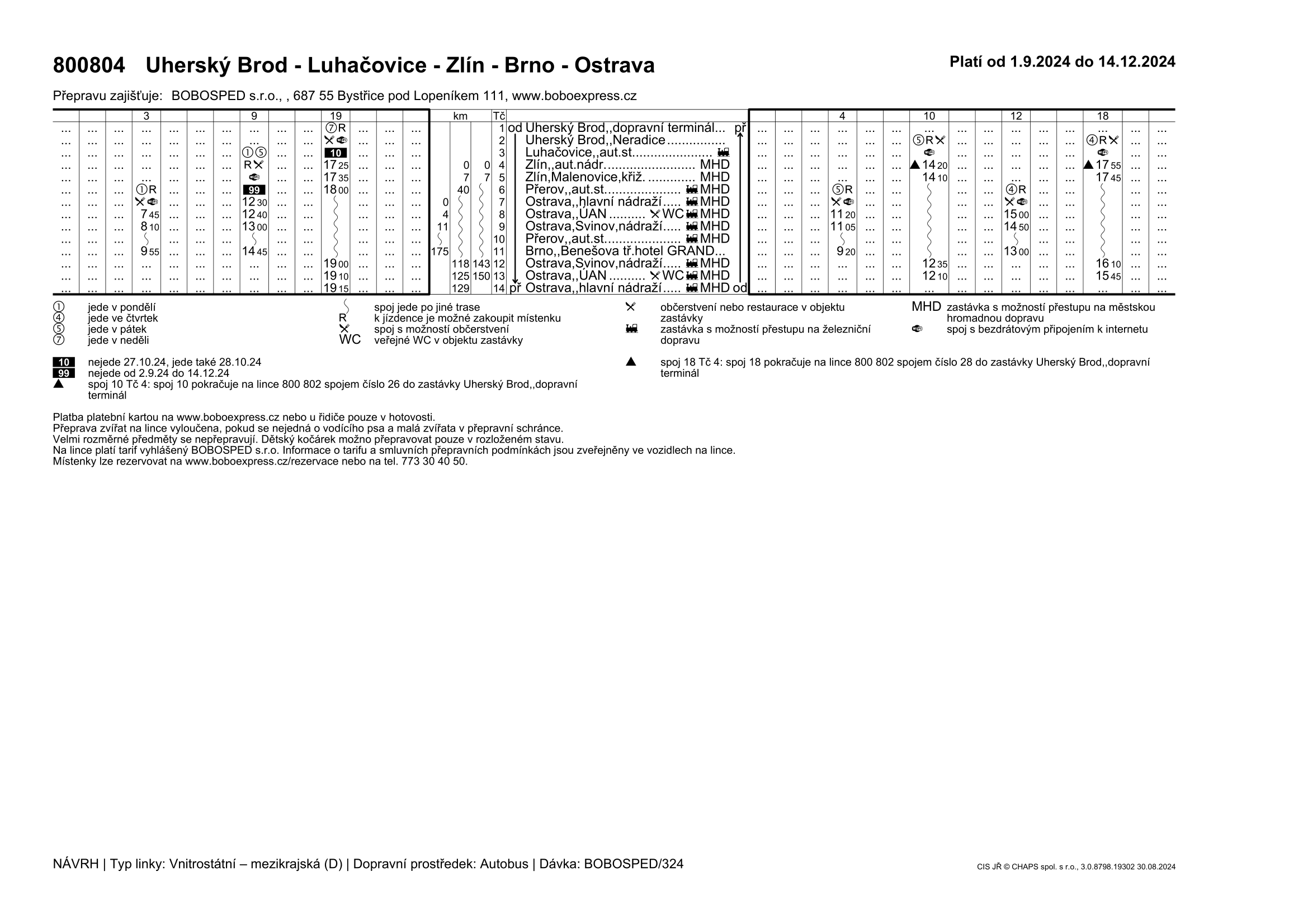 800804 Uherský Brod - Luhačovice - Zlín - Brno - Ostrava